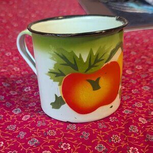 Vintage Enameled Metal Cup Mug Fruit MCM Apple Midcentury 40’s 50’s Cottage Core Cottagecore Rustic Farmhouse Drink Cup Coffee Mug Boho Bohemian