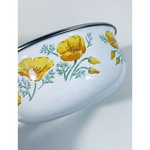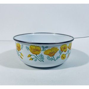 Vintage Enamelware Nesting Bowl Yellow Orange Poppies Flowers Kobe Kitchen