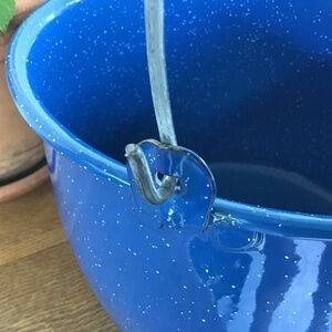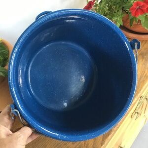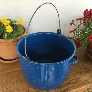 Vintage Enamelware Pot Speckle Blue White Granite Camping Ware Cooking Stock