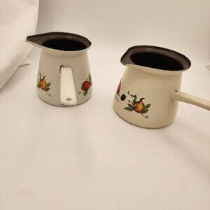 Vintage Enamelware Turkish Coffee Pots Garden Design Set Of 2 Made in Slovenia