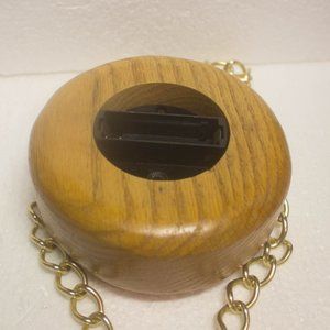 This is a unique pairing with a vintage 1983 Bell System medallion on a chain with a Kienzle clock in the shape of a pocket watch. This is not a pocket watch unless you have big big pockets. The medallion is about 2.5 inches wide. The clock face is about 2.75 inches wide and the entire clock is about 4.25 inches wide. The entire piece weighs a little over a pound. The chain is about 26.5 inches long. The clock does work on one AA battery not included. There is no second hand on the clock. Some light surface scratches on the clock face and maybe some slight damage to the wood holder. I have tried to show what I call damage in the images. I do believe the medallion was attached to the chain at a later date as I have seen the medallion but never one that had a hole bored in it. Kienzle is a clock/watch maker from Germany and have been around for several years. Please ask any questions concerning the offering you may have.