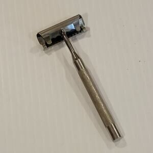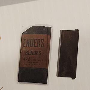 Vintage Enders safety razor with box and blade with sleeve. Pre-owned, condition commensurate with age, please see photos for details. Razor in good shape, box is broken, see the photos.