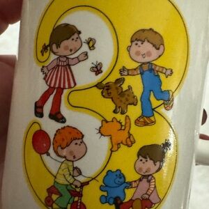 Vintage Enesco 1982 Now I’m 3 Children's Birthday Mug Cup Collectable. Charming Enesco mug featuring playful children and toys. Bright yellow background with multicolor accents. Smoke & pet free home. See pics for measurements. Bundle to save - I have lots of vintage items!