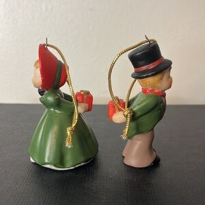 Enesco bisque porcelain Victorian kissing couple holding gifts figurine Christmas Ornaments
