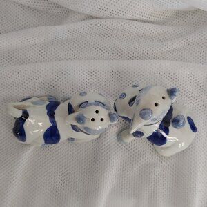 Vintage Enesco Ceramic Blue and White Cow Figurines
