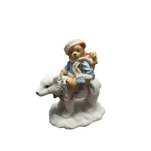 622796 vintage 1994 Enesco Cherished Teddies Figurine. Still in orginal box with the certificate in great condition no cracks or chips. Eric Bear Tidings of Joy cherished bear riding a cute polar bear. Just under 4". Open to reasonable offers and bundle deals