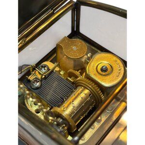 Vintage Enesco Glass Music Box With Angel & Brass Details Plays "Angels Weve Hea