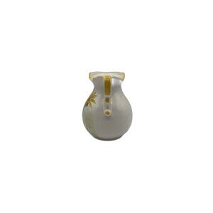 This vintage Enesco hand-painted ceramic pitcher features a charming white base with yellow flowers and green accents, making it a lovely addition to any collection. With a 24 oz capacity and a round shape, this pitcher is perfect for all occasions and is easy to fill with its included handle. The 1970s style and food & drink theme add a touch of nostalgia to your kitchen decor. Crafted from ceramic, this pitcher requires hand wash only to maintain its original painted finish. Please view pictures closely as they are part of the description. Thanks. ossLR