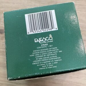 Vintage Enesco Ivory Cats Christmas Ornament and Decorative Tin