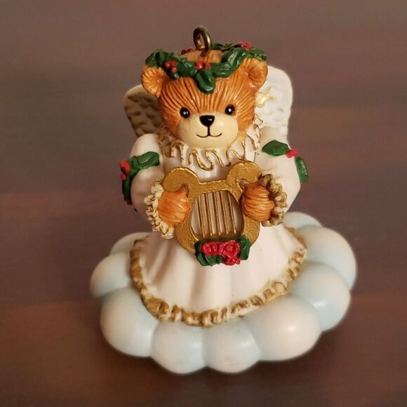 Vintage Enesco Lucy & Me "Angel on a Cloud" Teddy Bear with Harp Ornament - 1987