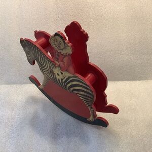 Vintage Enesco Circus Clown atop a Rocking Zebra, the Music Box plays