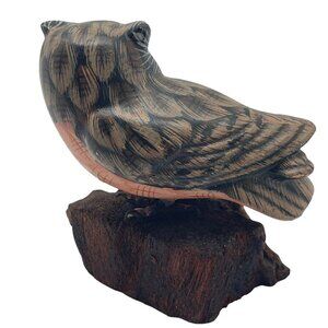 Vintage Enesco Owl Perched On Wood Figurine 1986