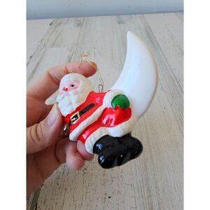 Vintage Enesco Santa Moon ceramic ornament red white shabby chic Xmas tree