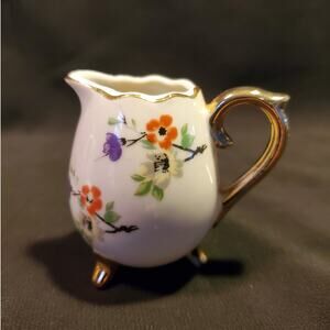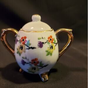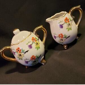 Vintage Enesco Sm Egg Shaped Footed Cream N Sugar Cherry Blossom