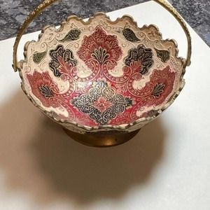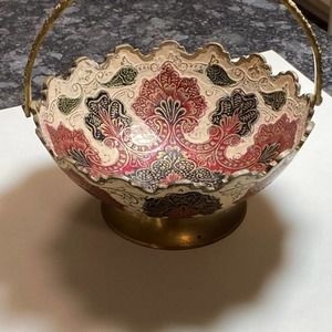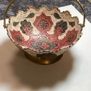 Vintage Enesco Solid Brass Enameled Bowl With Handle