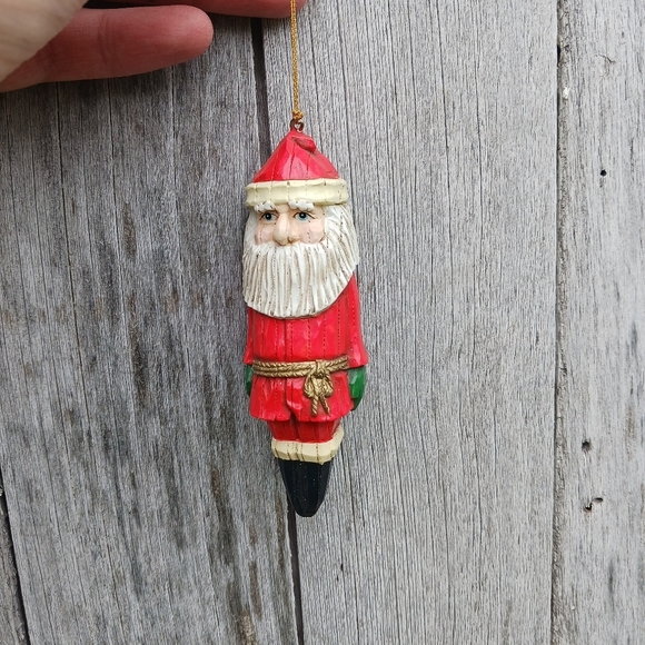 It's a wooden, Rustic Icicle shape Santa ornament. It's in great pre-owned condition. See photos for condition and measurements