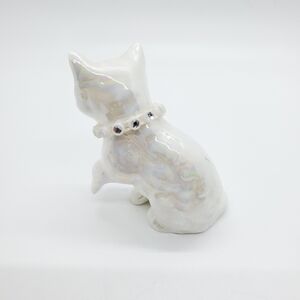 Vintage Enesco cat kitten pearl glaze figurine. She wears a bling Rhinestone collar. Excellent condition.