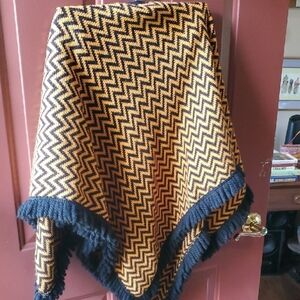 Elegant Toplet poncho with a striking chevron pattern. Features black and gold hues for a sophisticated look. vintage 70 's made in England