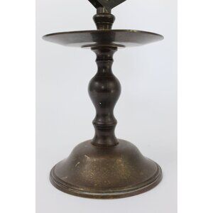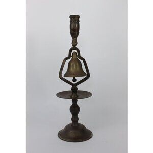 Vintage English Brass Tavern Candlestick Holder with Service Bell, Two Tier