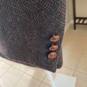 Vintage English Manor Two Button Dark Brown Tweed Blazer Wooden Buttons 36 S
