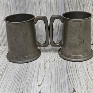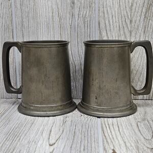 Vintage English Pewter Tankard Mugs Set of 2 Beer Ale Cups Rustic Barware 898 UK