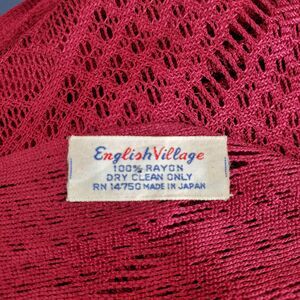 Vintage English Village Open Weave Crochet Rayon Burgandy Fringe Shawl