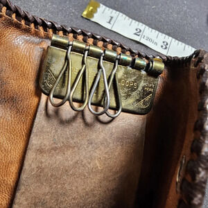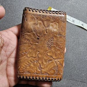 Vintage Engraved Floral Leather Key Holder/organizer tri fold Wallet Case missing 2 of the key ring/hooks shows signs of wear see pictures for reference