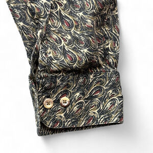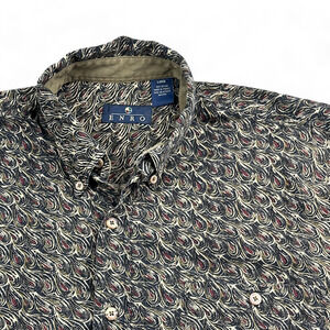 Vintage Enro Shirt Adult LARGE Brown Black Paisley 90s Psychedelic Long Sleeve