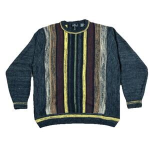Vintage Enro Sweater Men’s XL Wool Blend Vertical Stripe Coogi Style