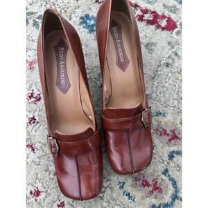 Vintage Enzo Angiolini Eadanette Brown Leather Low Loafer Pumps Heels Size 8.5