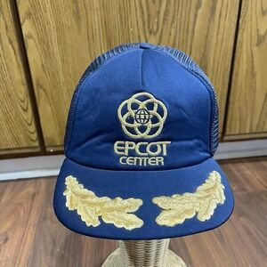 Vintage Epcot Center Blue Gold Embroidered Mesh Snapback Trucker Cap Hat NEW
