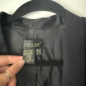 Elevate your wardrobe with this vintage Episode black blazer made from luxurious 100% silk. The structured tuxedo collar adds timeless elegance, while the minimalist single-button design and tailored cut make it a versatile piece for both work and evening wear.