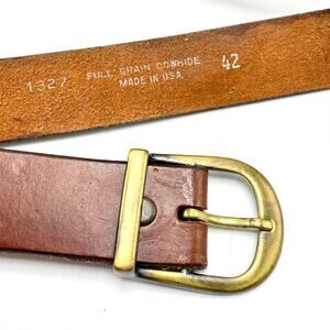 Vintage Equestrian Belt 42 Brown Leather Brass Buckle Full Grain Cowhide USA