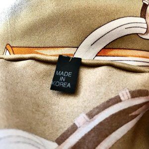 Vintage Equestrian Silk Scarf Fox Hunting Hounds Horn Horse Bits KOREA 34" sq