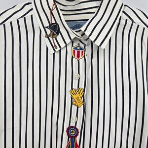 Vintage Equestrian Stripe Patch Button Down Shirt Size 10 Western Cowgirl Horses
