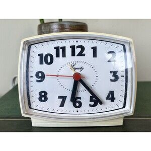 Vintage Equity 33100 Electric Analog Alarm Clock with White Case / Working