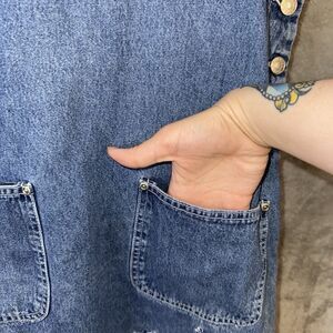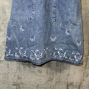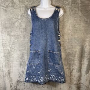 Vintage Eric Charles Y2K Denim Overall Dress Butterfly Embroidered Sz S Cottage