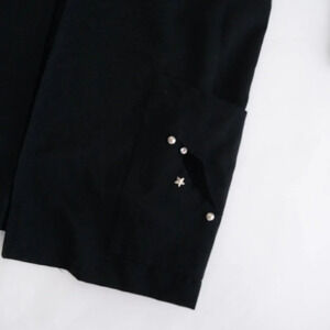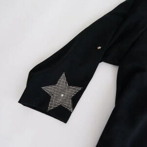 Step into edgy sophistication with the Vintage Eric Ryan Black "Stars & Bolt" Design Open Face Blazer/ cardigan sweater