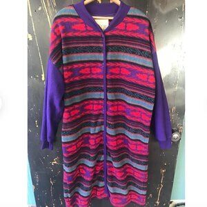 Amazing vintage 90’s southwest print fleece tunic length sweater jacket / shacket by Erika Taylor Intimates. Size M