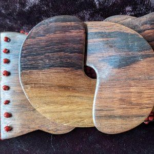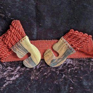 Vintage Erik & Mike Beaded Stretch Belt, Interlocking Wooden Clasp, Red
