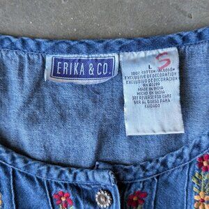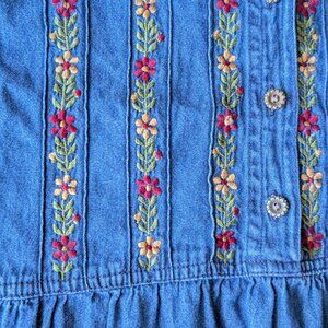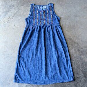 Vintage Erika & Co Blue Denim Floral Embroidered Midi Dress large
