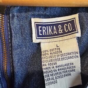 Vintage Erika & Co Denim Dress Women Lg 90s Maxi Blue Floral Cottage Granny