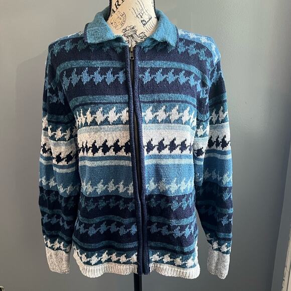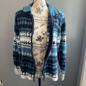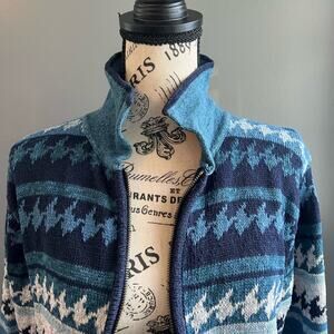 Vintage Erika & Co blue white and black striped patterned collared zip up jacket