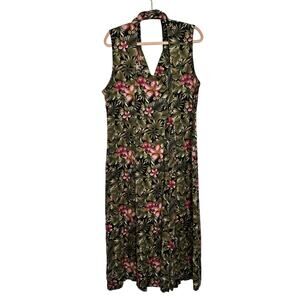 Vintage Erika Size XL 1990s Pink Green Hibiscus Flowers Button Up Maxi Dress