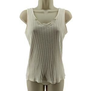 Vintage Erika Taylor Intimates Cream Cotton Tank Ribbed Small CottageCore