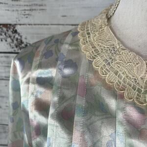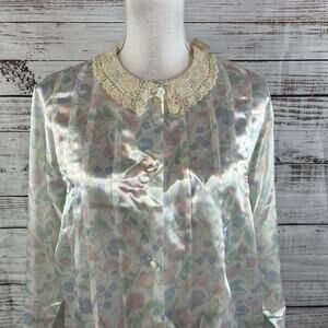 Vintage Erika Taylor Intimates Housecoat Dress Gown sz Medium Lace Collar Satin
