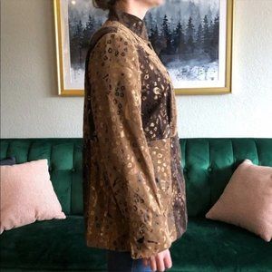 Vintage Erin London Brown Corduroy Patchwork Leopard Print Jacket