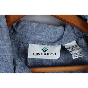 Vintage Erin London Linen Blend Button Up Shirt Size Large Blue Preppy Women