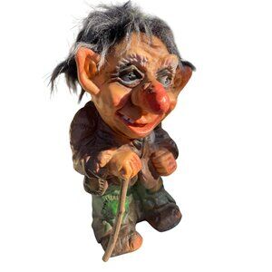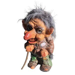 This vintage Erling Krage Bergen Norway troll figurine captures the charm of mid-century design with its hand-painted details, textured hair, and aged craftsmanship. A collectible piece from tales of woods trolls that are shaggy, shambling monsters. From an estate sale Norwegian troll collection.
