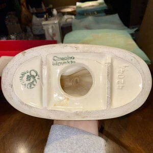 Capture the elegance of the Art Deco era with this Vintage Erphila Czechoslovakia 11” Tall Ceramic Dancing Figurine featuring a graceful woman in a vibrant yellow dress. Standing at 11 inches tall, this exquisite figurine radiates timeless charm. While it is used, it is in wonderful condition overall. However, it's important to note that there is a stress fracture around the neck that has been previously repaired, as shown in the photo. For collectors of vintage ceramics or those who appreciate the allure of Art Deco aesthetics, this Erphila Czechoslovakia Dancing Figurine is a captivating addition. Buy now to bring home a wonderful piece of bygone elegance with a unique history.